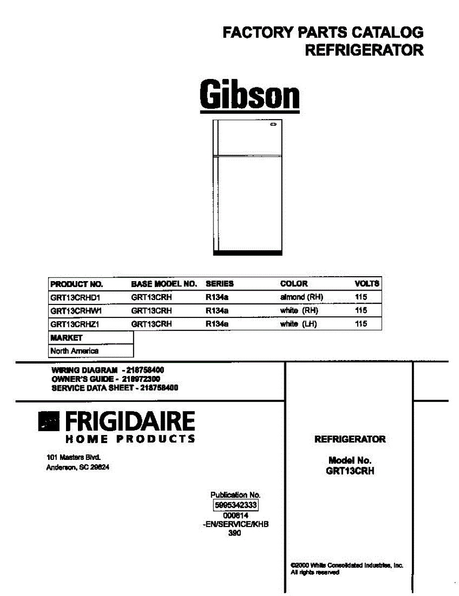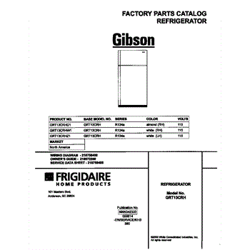 Parts for Frigidaire GRT13CRHZ1: 01 - Cover Parts