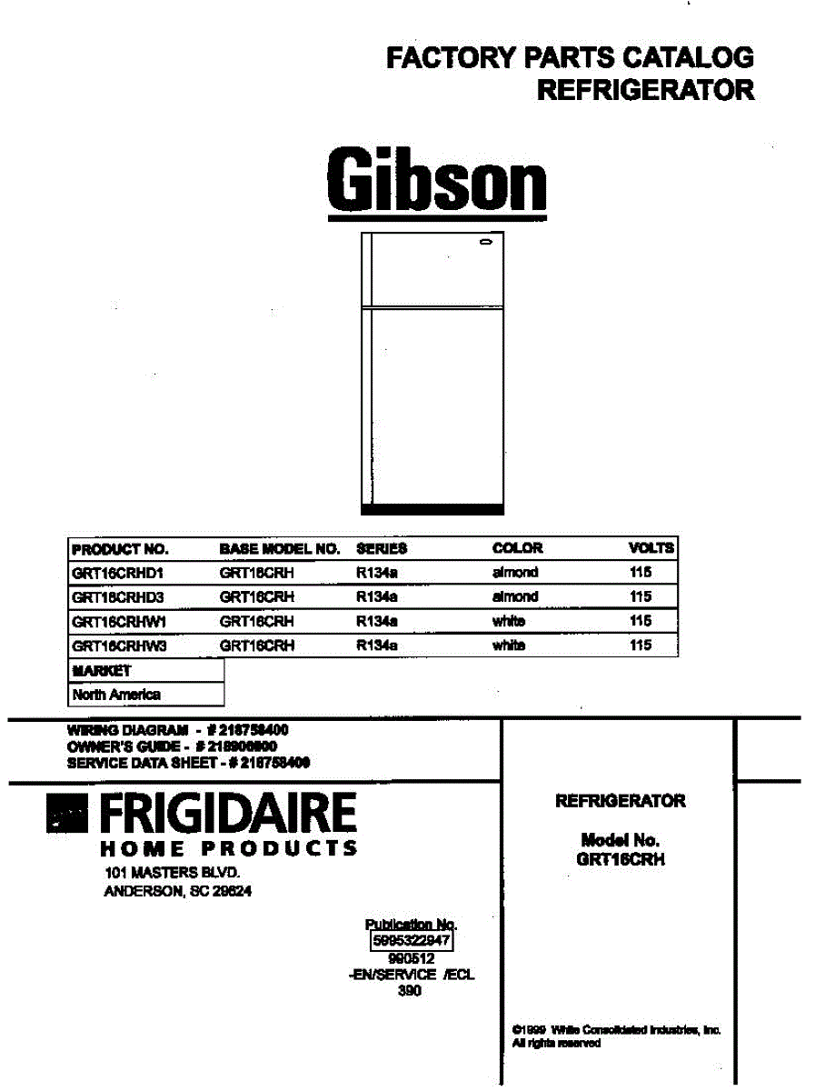 Parts for Frigidaire GRT16CRHW1: 01 - Cover Parts