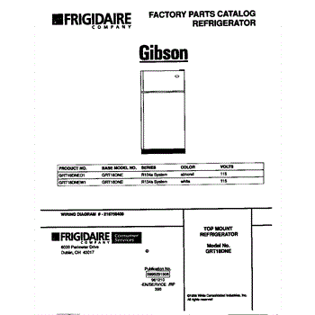 Parts for Frigidaire GRT18DNEW1: 01 - Cover Parts