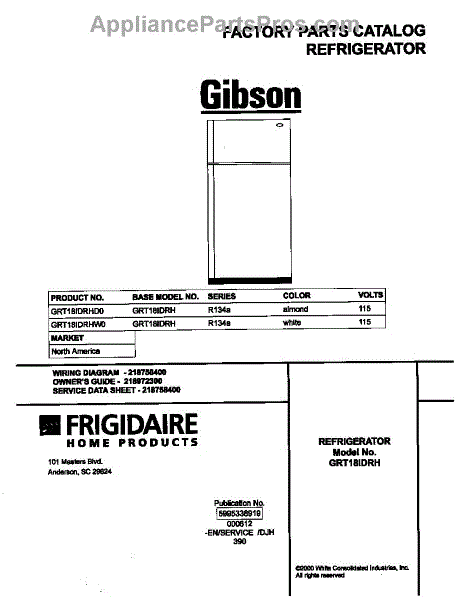 Parts for Frigidaire GRT18IDRHD0: 01 - Cover Parts