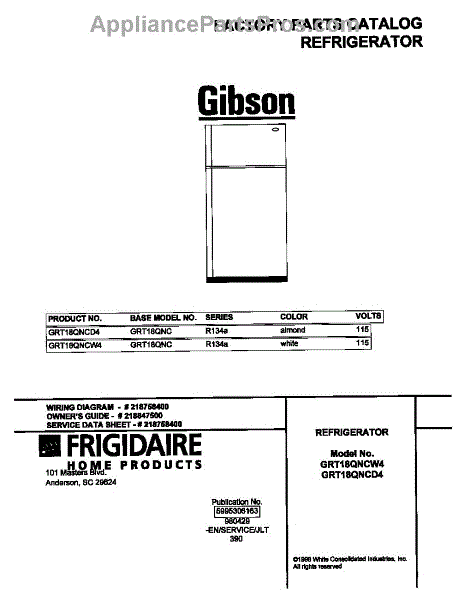 Parts for Frigidaire GRT18QNCD4: 01 - Cover Parts