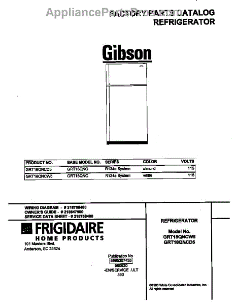 Parts for Frigidaire GRT18QNCW5: 01 - Cover Parts