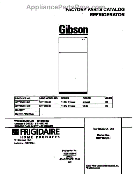 Parts for Frigidaire GRT18QNHW2: 01 - Cover Parts