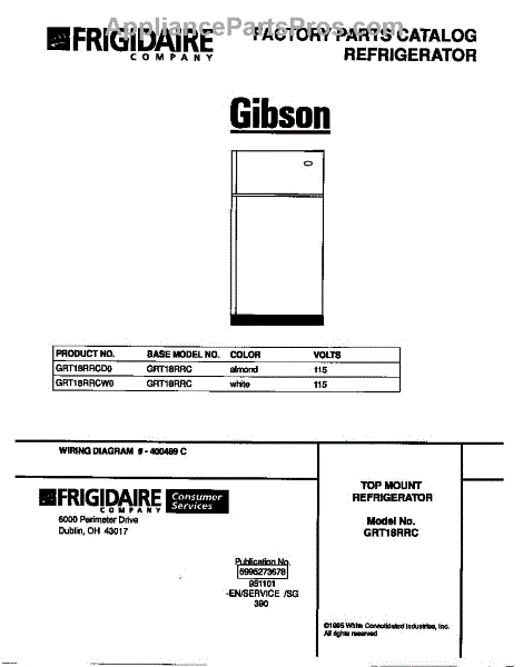 Parts for Frigidaire GRT18RRCW0: 01 - Cover Parts