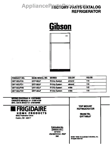 Parts for Frigidaire GRT18SJFW1: 01 - Cover Parts