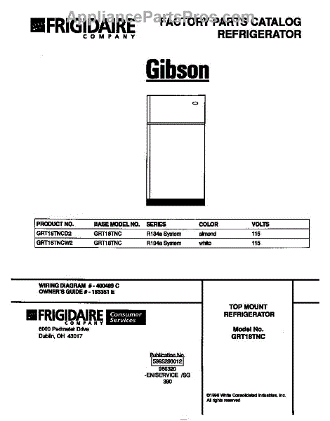 Parts for Frigidaire GRT18TNCD2: 01 - Cover Parts