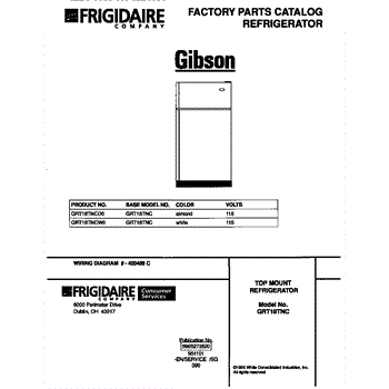 Parts for Frigidaire GRT18TNCW0: 01 - Cover Parts