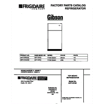Parts for Frigidaire GRT18TNCW2: 01 - Cover Parts