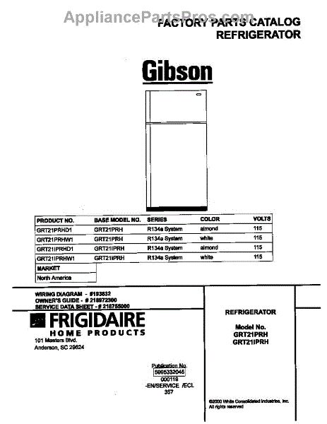 Parts for Frigidaire GRT21IPRHW1: 01 - Cover Parts