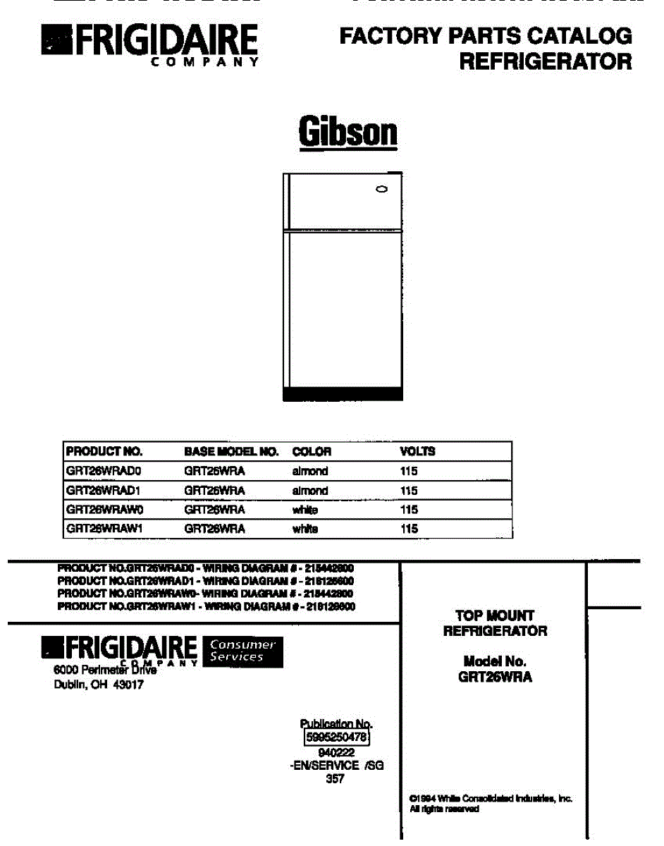 Parts for Frigidaire GRT26WRAD1: 01 - Cover Parts