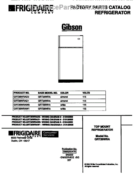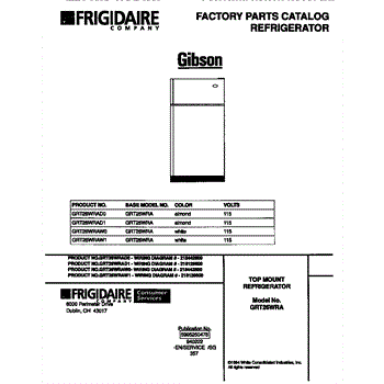 Parts for Frigidaire GRT26WRAW1: 01 - Cover Parts