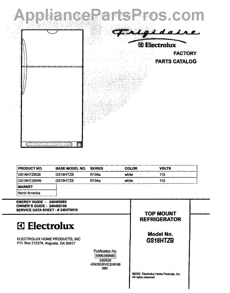 Parts for Frigidaire GS18HTZBW6: 01 - Cover Parts