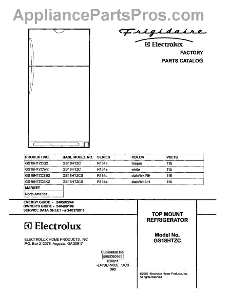 Parts for Frigidaire GS18HTZCSK2: 01 - Cover Parts