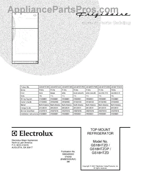 Parts for Frigidaire GS18HTZDWB: 01 - Cover Parts