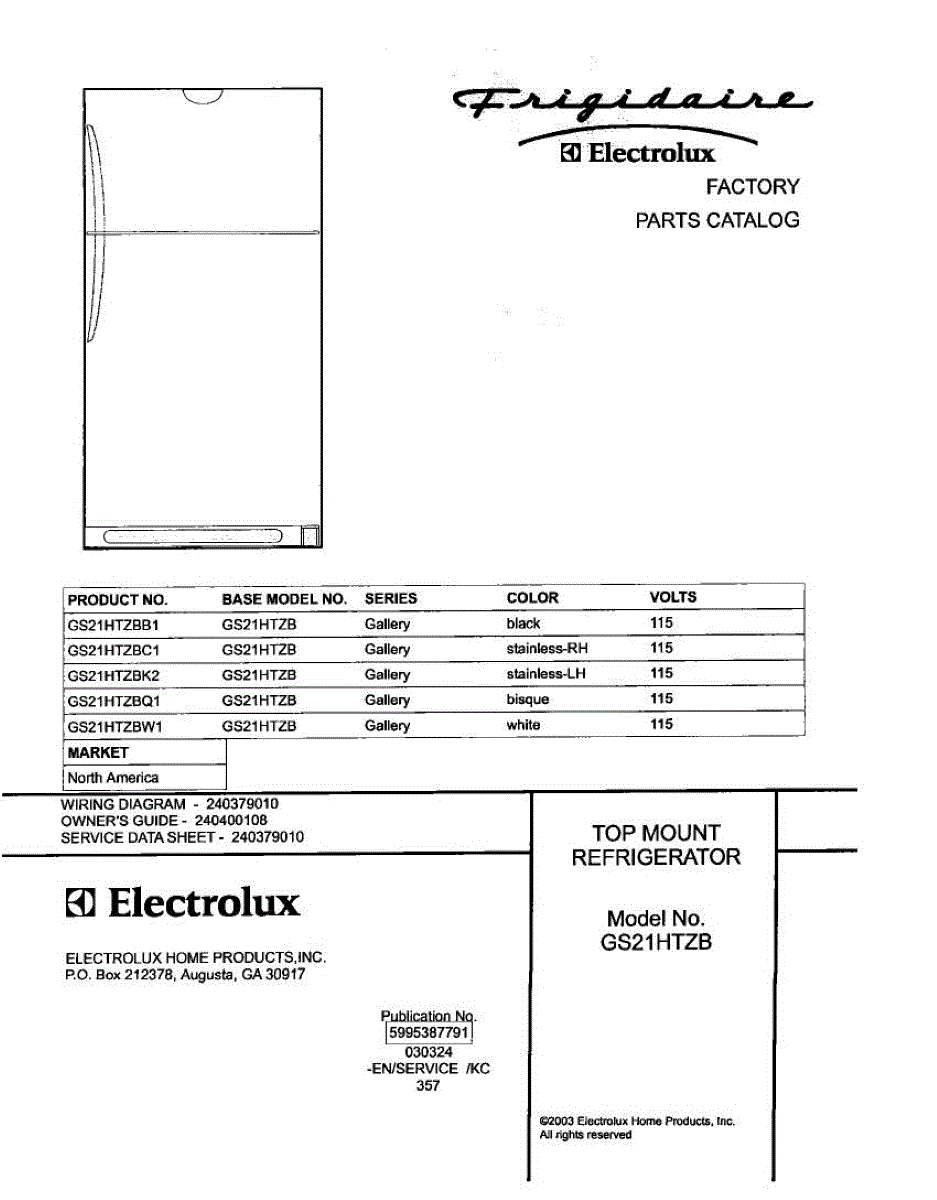 Parts for Frigidaire GS21HTZBQ1: 01 - Cover Parts