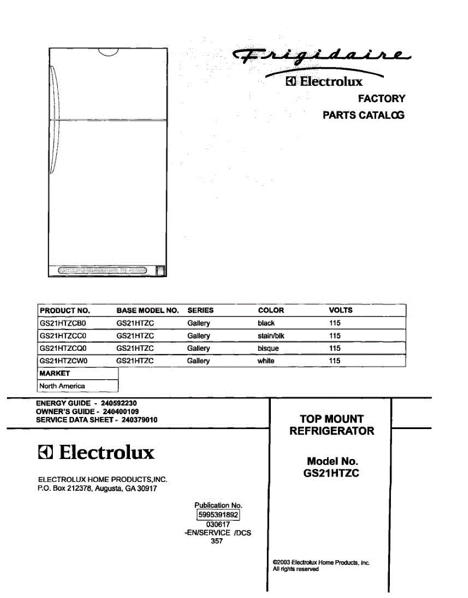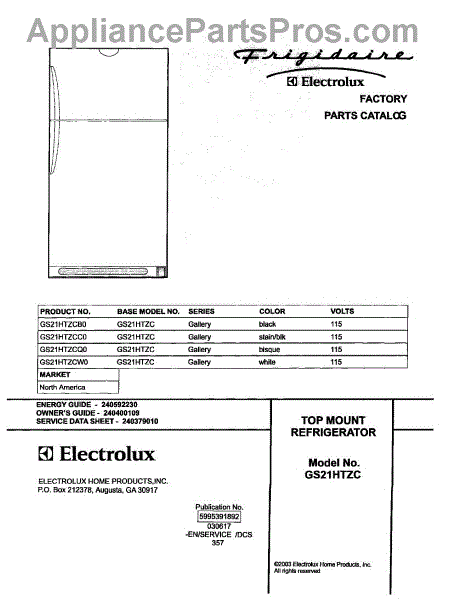 Parts for Frigidaire GS21HTZCW0: 01 - Cover Parts