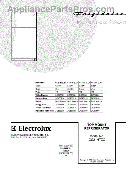 Parts for Frigidaire GS21HTZCW1: 01 - Cover Parts