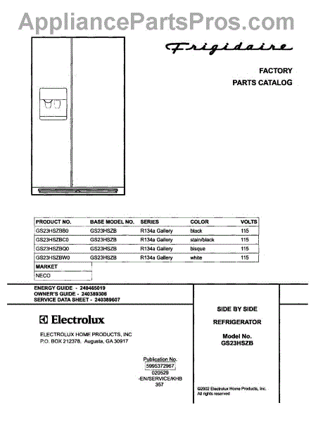 Parts for Frigidaire GS23HSZBB0: 01 - Cover Parts