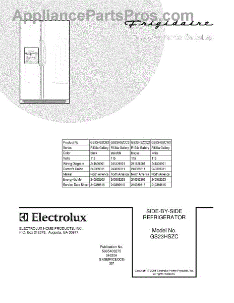 Parts for Frigidaire GS23HSZCC3: 01 - Cover Parts