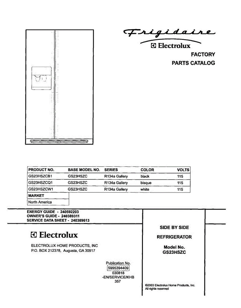 Parts for Frigidaire GS23HSZCW1: 01 - Cover Parts