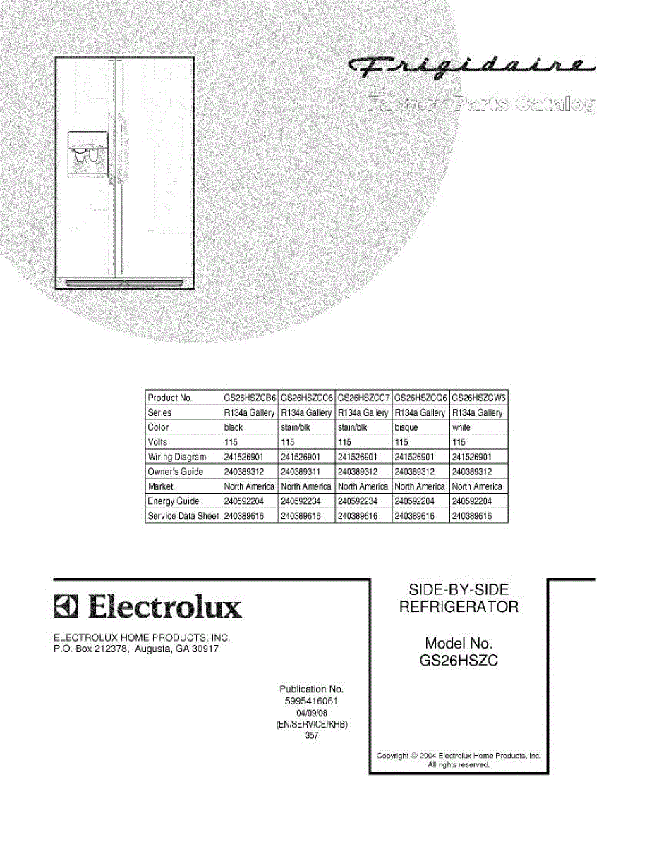 Parts for Frigidaire GS26HSZCQ6: 01 - Cover Parts