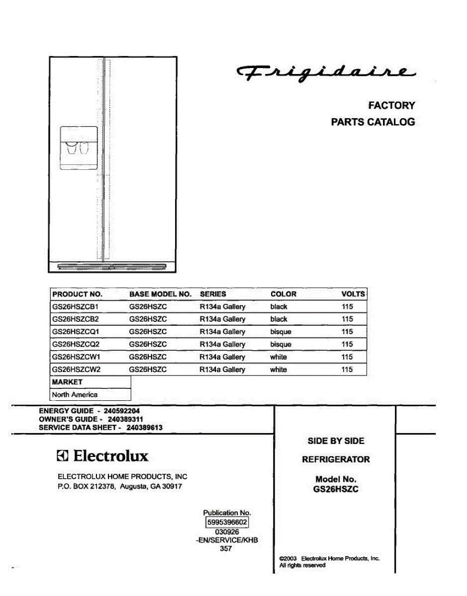 Parts for Frigidaire GS26HSZCW1: 01 - Cover Parts