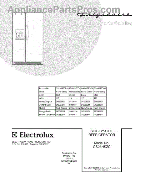 Parts for Frigidaire GS26HSZCW3: 01 - Cover Parts