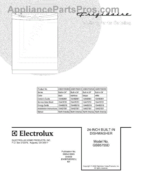 Parts for Frigidaire GSB5755DQ0: 01 - Cover Parts