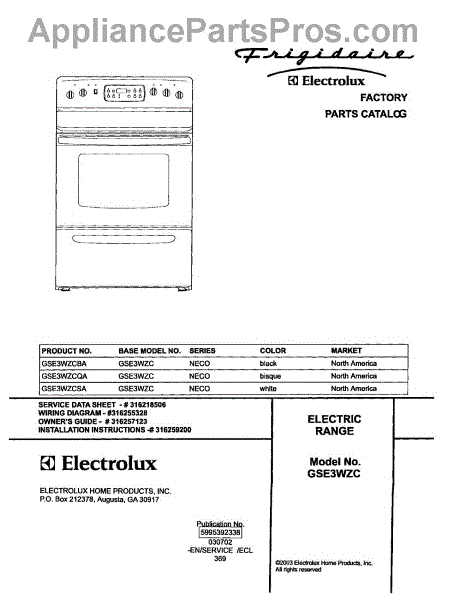 Parts for Frigidaire GSE3WZCBA: 01 - Cover Parts