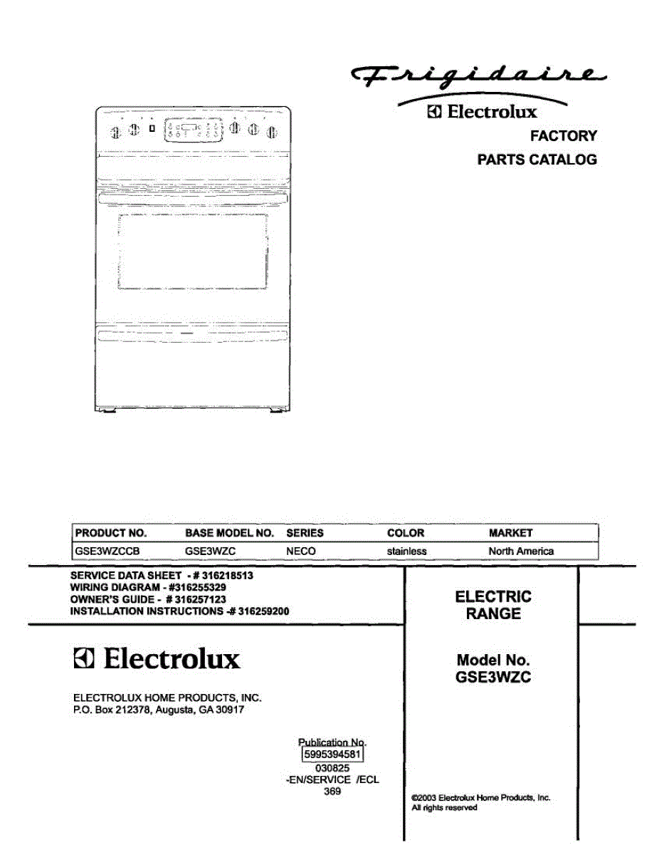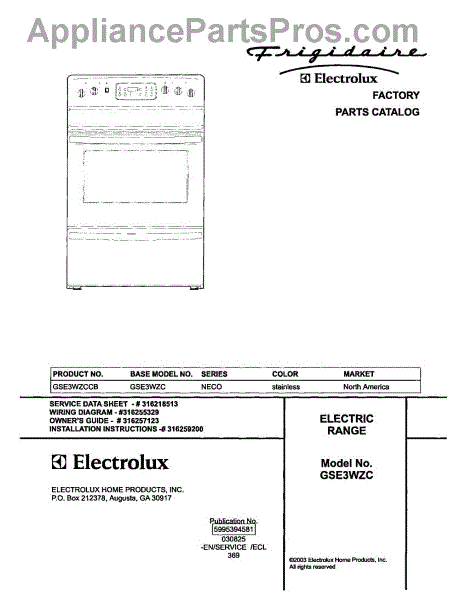 Parts for Frigidaire GSE3WZCCB: 01 - Cover Parts