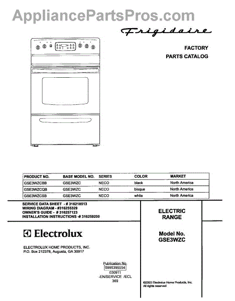 Parts for Frigidaire GSE3WZCSB: 01 - Cover Parts