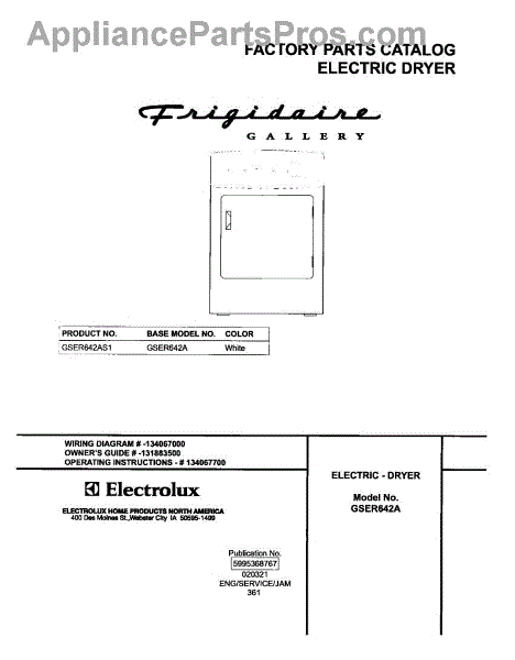 Parts for Frigidaire GSER642AS1: 01 - Cover Parts