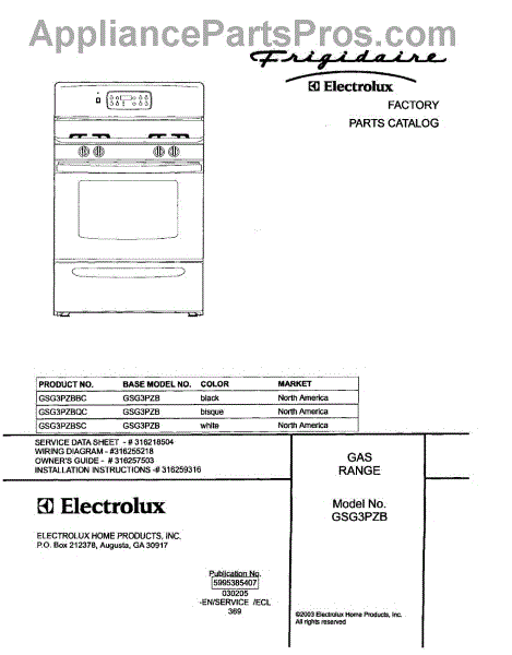 Parts for Frigidaire GSG3PZBQC: 01 - Cover Parts