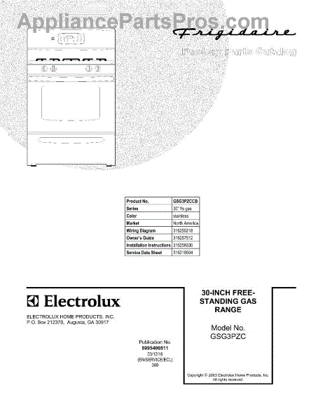 Parts for Frigidaire GSG3PZCCB: 01 - Cover Parts