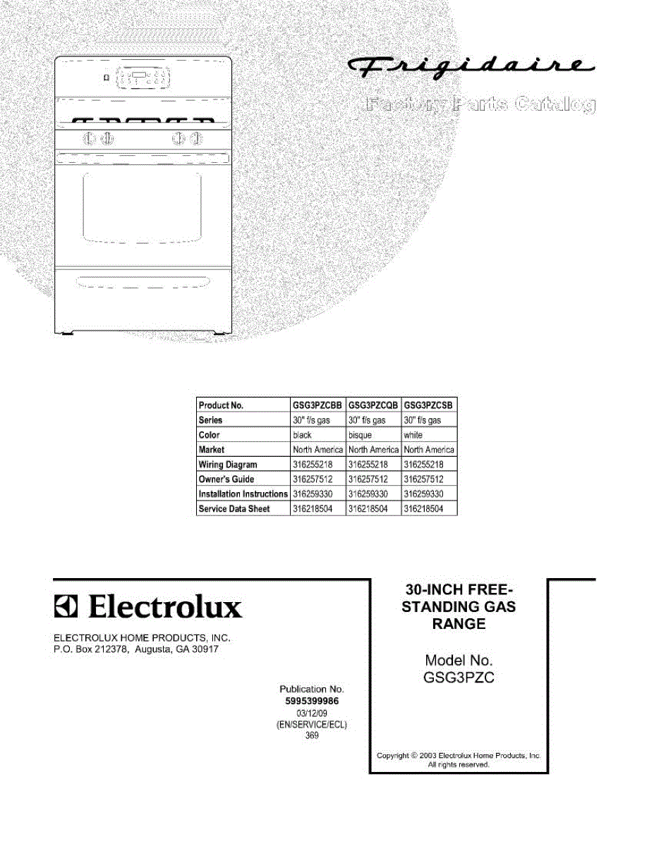 Parts for Frigidaire GSG3PZCQB: 01 - Cover Parts