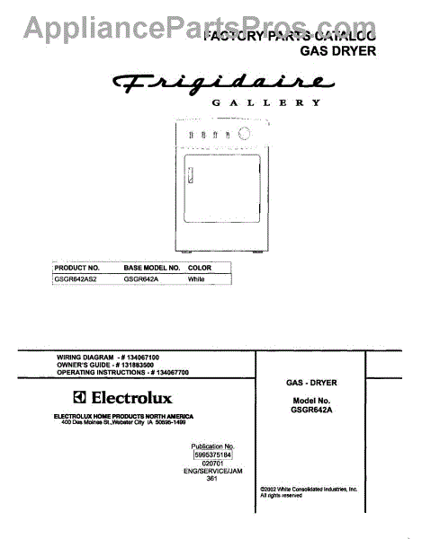 Parts for Frigidaire GSGR642AS2: 01 - Cover Parts