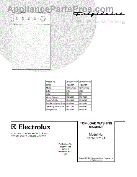 Parts for Frigidaire GSWS9719AS1: 01 - Cover Parts