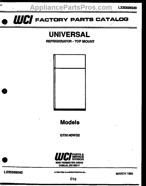 Parts for Frigidaire GTN140BG2: 01 - Cover Parts