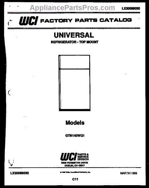 Parts for Frigidaire GTN140WG1-44: 01 - Cover Parts