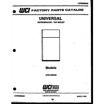 Parts for Frigidaire GTN140WGW2: 01 - Cover Parts