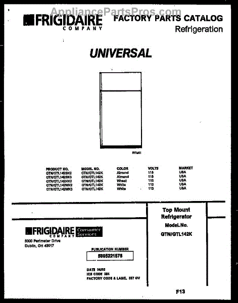 Parts for Frigidaire GTN142HK2: 01 - Cover Parts
