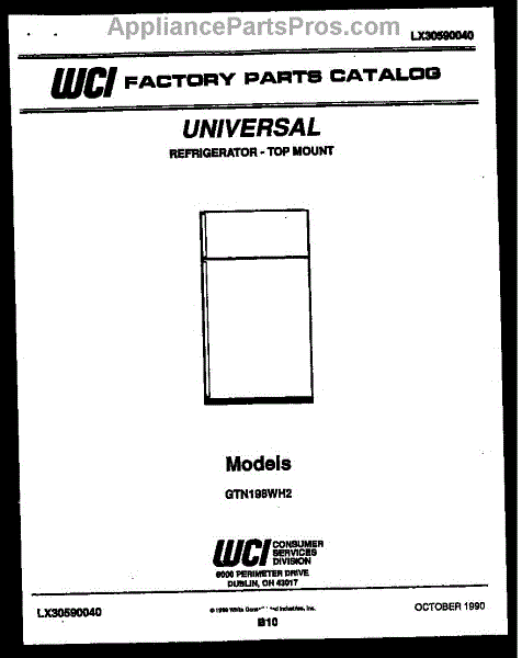 Parts for Frigidaire GTN198WY2: 01 - Cover Parts
