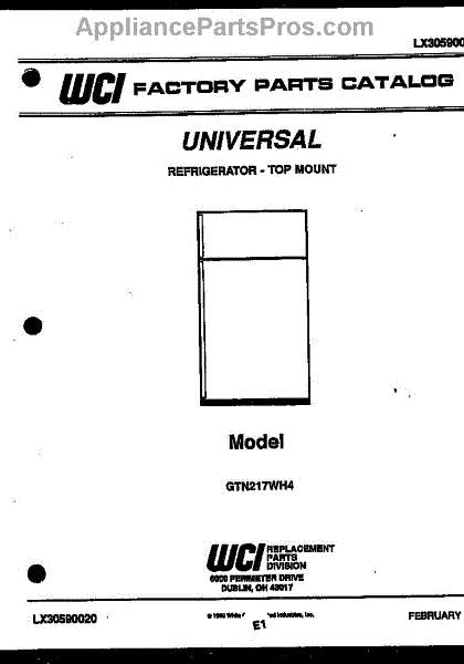 Parts for Frigidaire GTN217WH4: 01 - Cover Parts