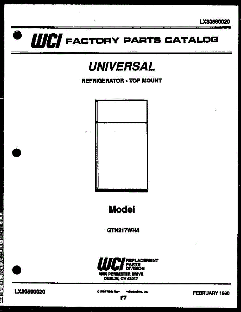 Parts for Frigidaire GTN217WHW4: 01 - Cover Parts