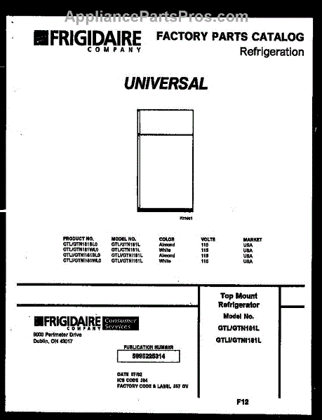 Parts for Frigidaire GTNI181BLL0: 01 - Cover Parts
