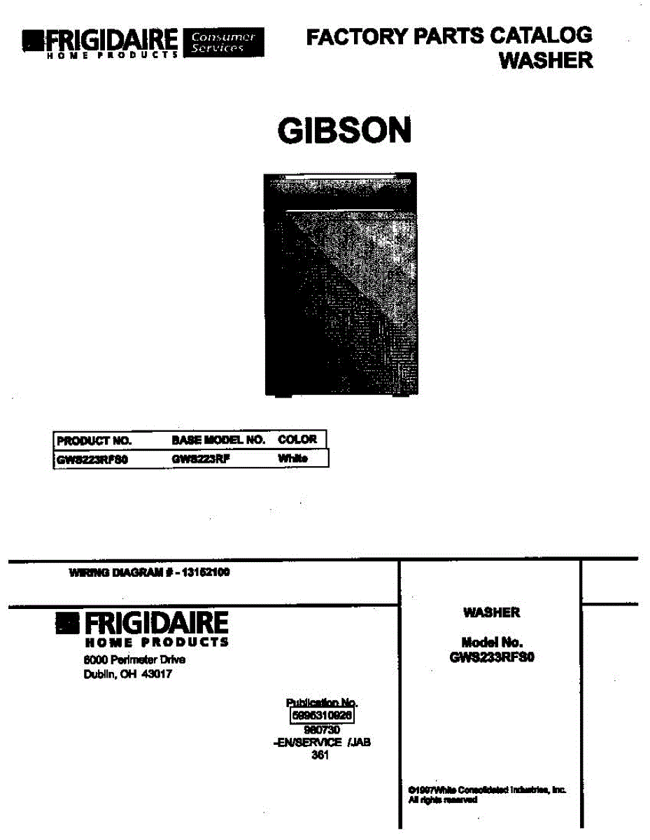 Parts for Frigidaire GWS223RFS0: 01 - Cover Parts
