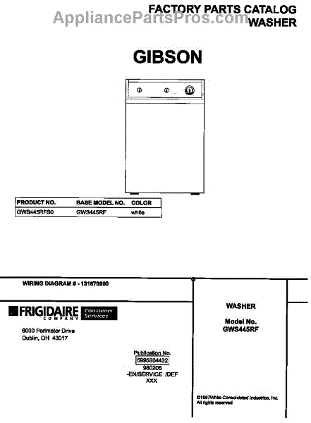 Parts for Frigidaire GWS445RFS0: 01 - Cover Parts