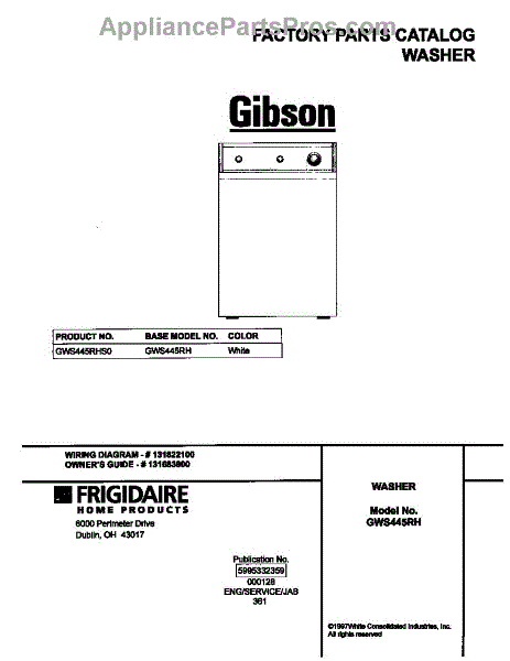 Parts for Frigidaire GWS445RHS0: 01 - Cover Parts