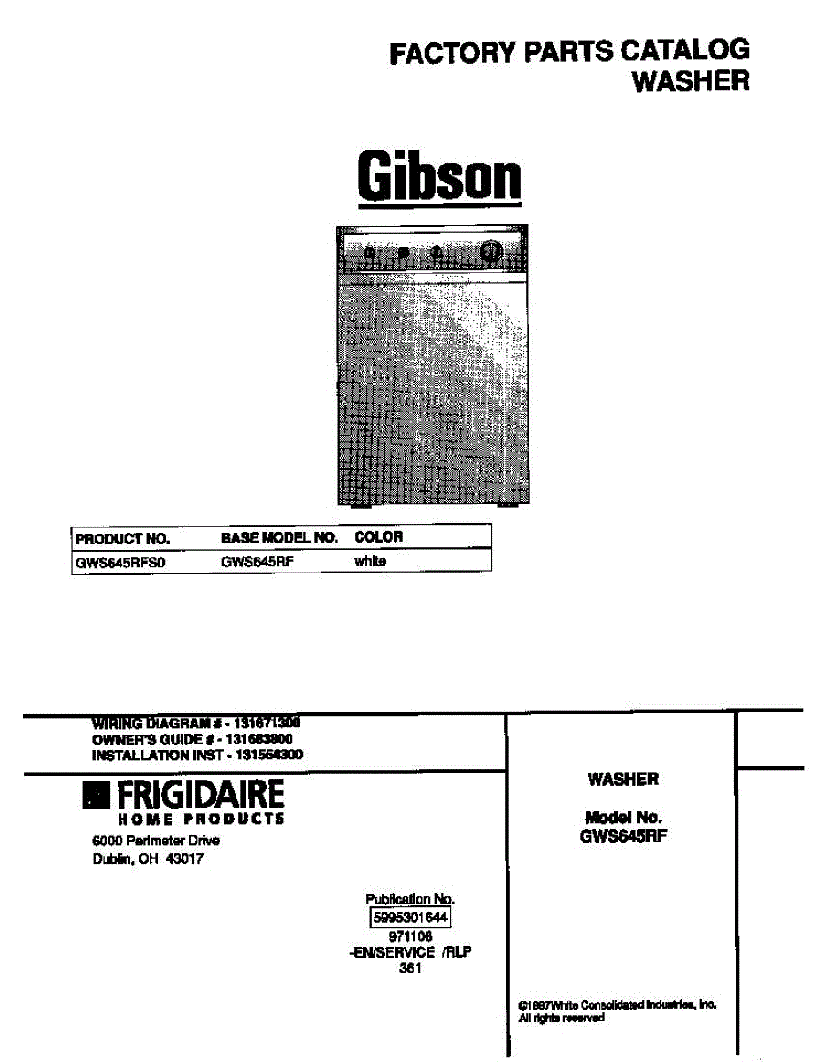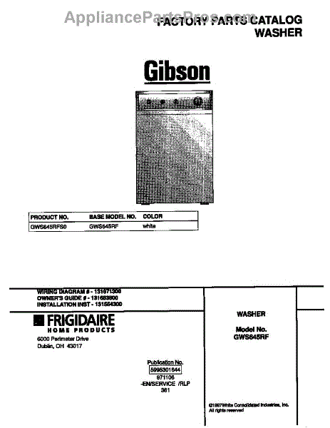 Parts for Frigidaire GWS645RFS0: 01 - Cover Parts
