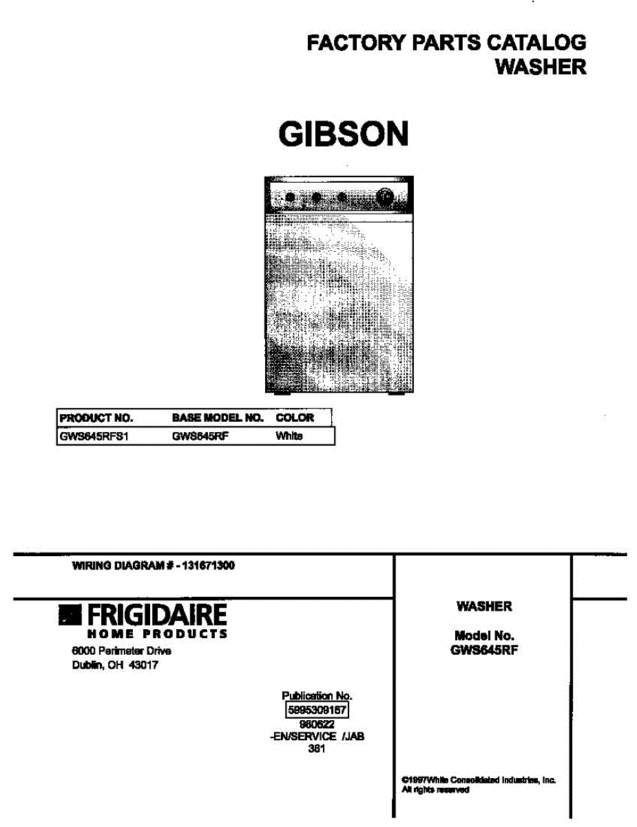 Parts for Frigidaire GWS645RFS1: 01 - Cover Parts
